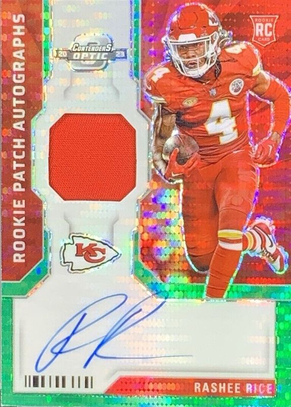 Best Prices Available For Sale of Rashee Rice 2023 Contenders Optic #RPA-RR Rookie Patch Auto - Green Pulsar /15