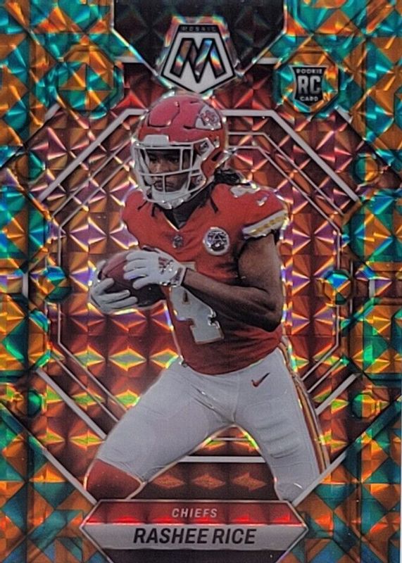 This card is 1 of 54 Rashee Rice's card variations in the 2023 Mosaic set being tracked by Sports Card Investor, including Base, Choice Red & Green, Green, Mosaic, and No Huddle.