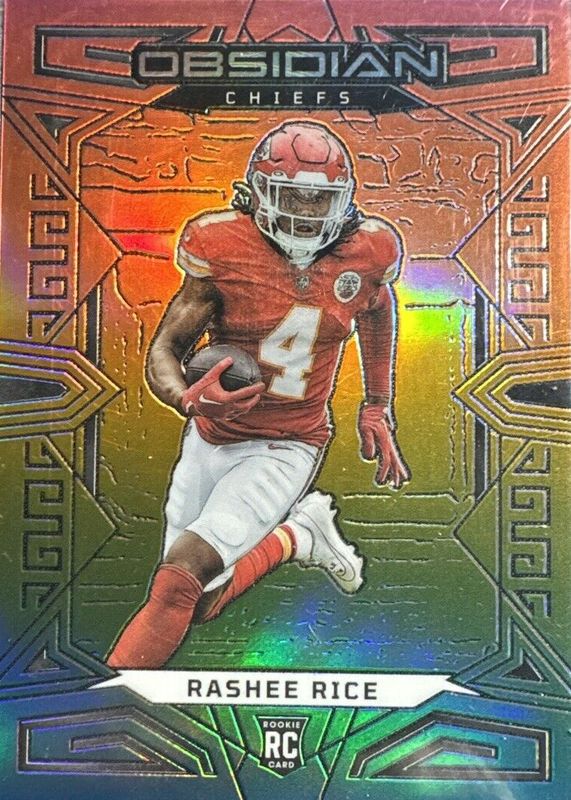 The Rashee Rice 2023 Obsidian #151 Electric Etch Neon Flood /3 Rookie card in Raw condition has not changed in price in the last 30 days and was last sold for $125.00 .