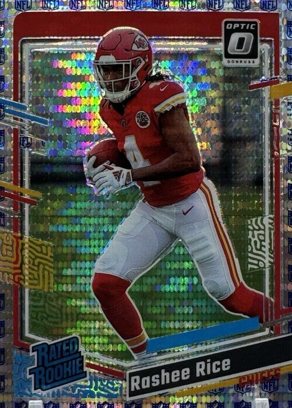 This card is 1 of 59 Rashee Rice's card variations in the 2023 Optic set being tracked by Sports Card Investor, including Base, Blue Hyper, Blue Scope, Green Hyper, and Green Velocity.