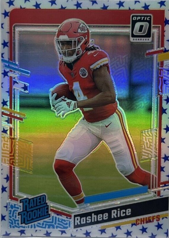 The Rashee Rice 2023 Optic #257 Stars /(SSP) Rookie card in Raw condition has not changed in price in the last 30 days and was last sold for $5.99 .