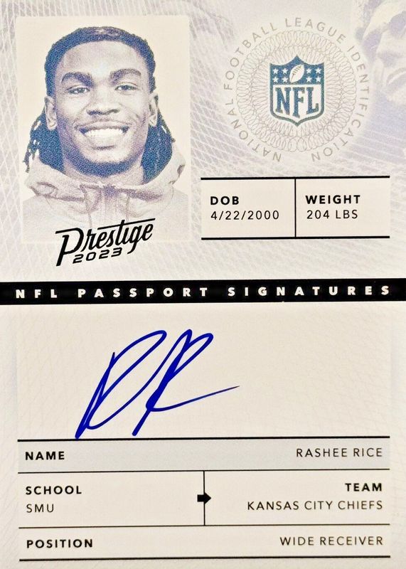 RASHEE RICE 2023 ON CARD AUTO Panini Prestige Passport Signature SP Chiefs RC