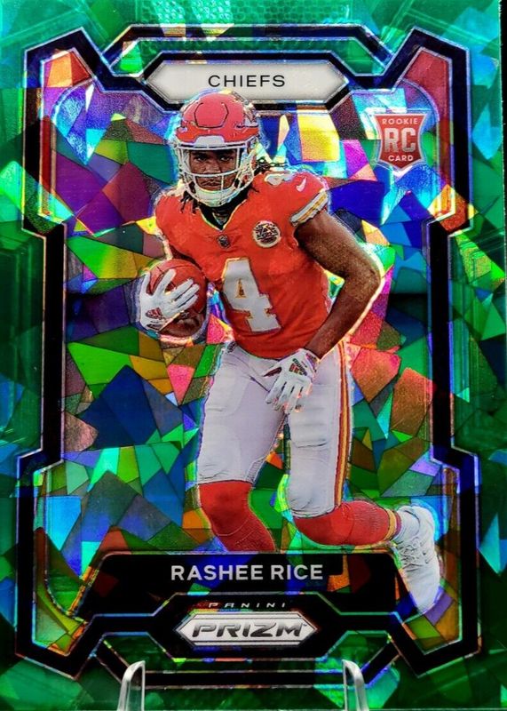 The Rashee Rice 2023 Prizm #350 Green Ice Rookie card in Raw condition has not changed in price in the last 30 days and was last sold for $43.00 .