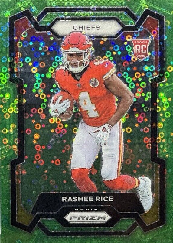 The Rashee Rice 2023 Prizm #350 No Huddle Neon Green /5 Rookie card in Raw condition has not changed in price in the last 30 days and was last sold for $120.39 .