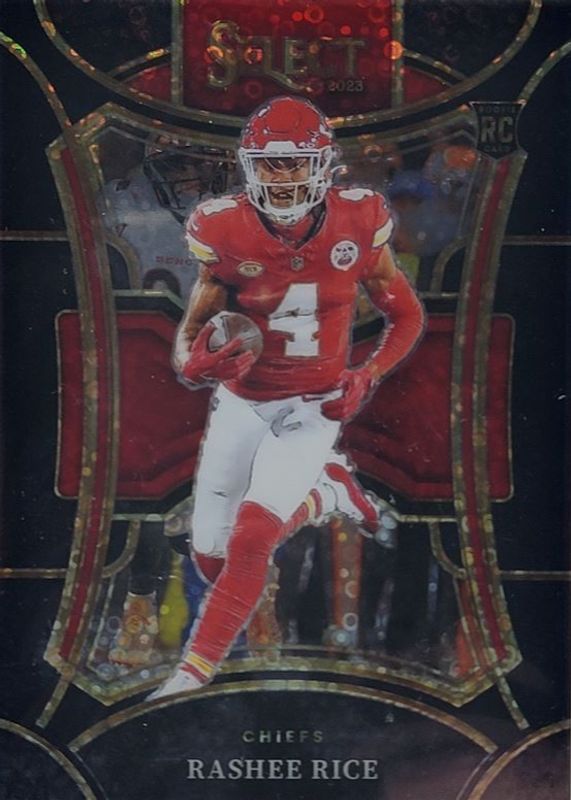 This card is 1 of 84 Rashee Rice's card variations in the 2023 Select set being tracked by Sports Card Investor, including Premier Level, Suite Level, Premier Level Black & Gold Die-Cut, Premier Level Black & Green Die-Cut, and Premier Level Black & Red Die-Cut.
