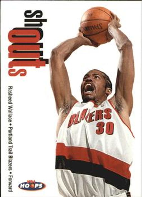 The Rasheed Wallace 1998 Hoops #29-SO Shout Outs card is 1 of 3 Rasheed Wallace's card variations in the 1998 Hoops set being tracked by Sports Card Investor, including Base, and Starting Five /5.
