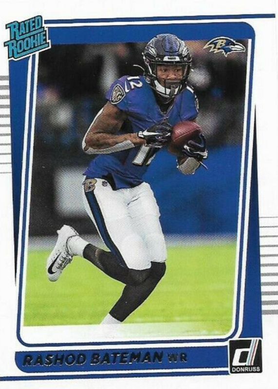 This card is 1 of 21 Rashod Bateman's card variations in the 2021 Donruss set being tracked by Sports Card Investor, including Base, No Name, Portrait, Press Proof Blue, and Press Proof Bronze.