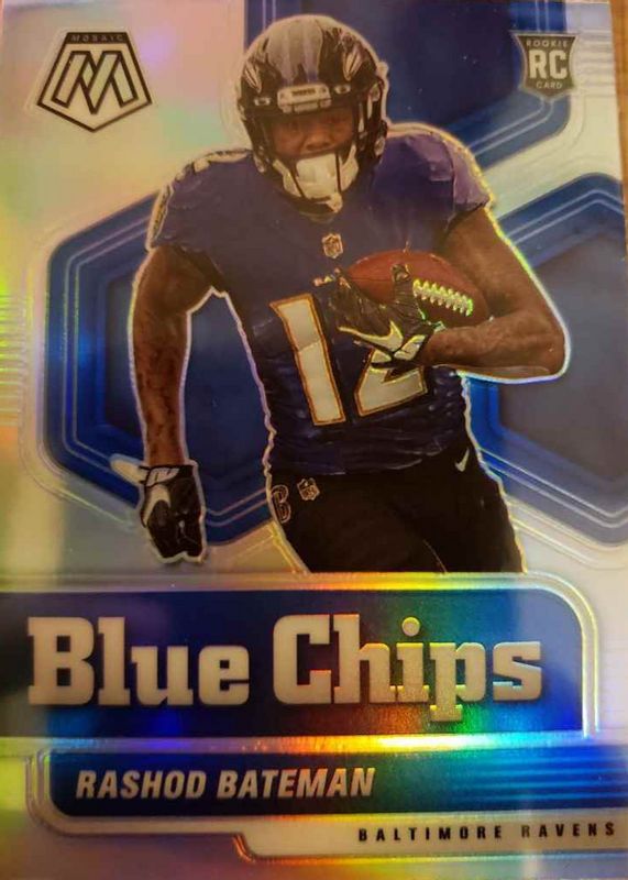 RASHOD BATEMAN RC 2021 MOSAIC SILVER PRIZM BLUE CHIPS BALTIMORE RAVENS NO 9