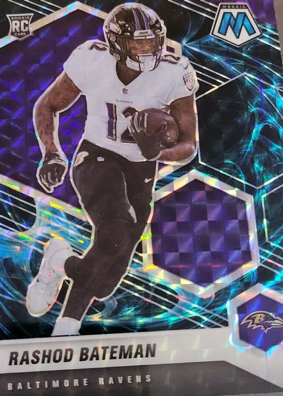 The Rashod Bateman 2021 Mosaic #310 Genesis /(SSP) Rookie card in Raw condition has not changed in price in the last 30 days and was last sold for $18.50 .