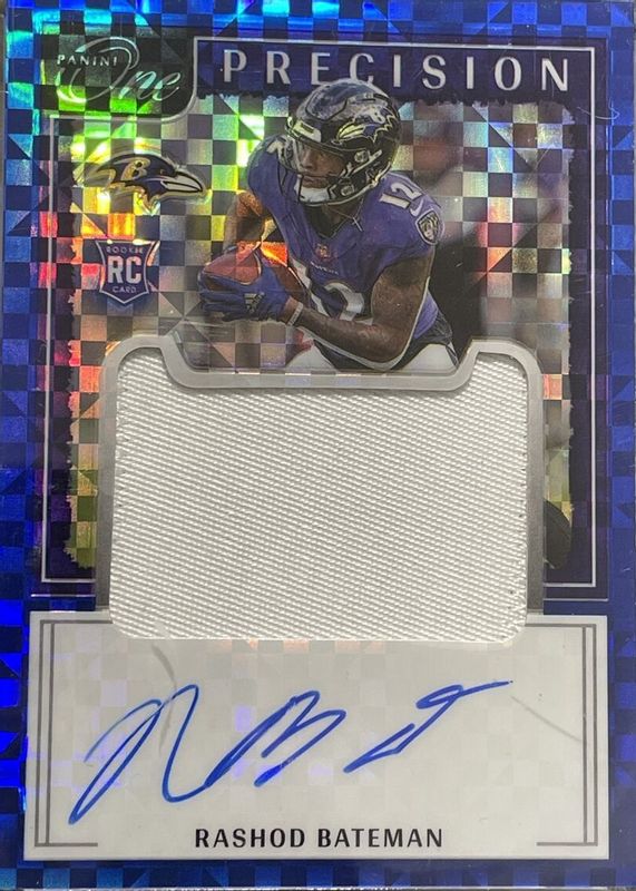 The Rashod Bateman 2021 One #310 Precision Rookie Patch Autographs - Blue (/35) card in Raw condition has not changed in price in the last 30 days and was last sold for $23.50 .