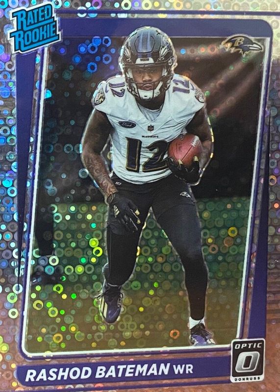 The Rashod Bateman 2021 Optic #210 Silver Circles /125 Rookie card in Raw condition has not changed in price in the last 30 days and was last sold for $6.29 .
