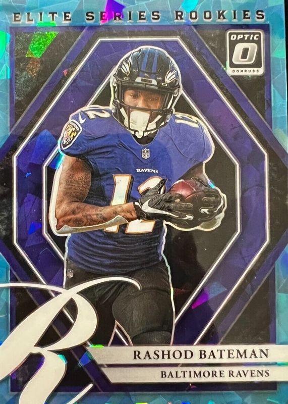 The Rashod Bateman 2021 Optic #ESR-9 The Elite Series Rookies - Ice /15 card in Raw condition has not changed in price in the last 30 days and was last sold for $15.50 .