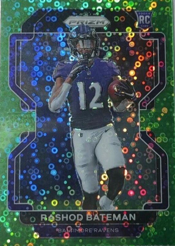 This card is 1 of 71 Rashod Bateman's card variations in the 2021 Prizm set being tracked by Sports Card Investor, including Base, Disco, Green, Green Ice, and Lazer.