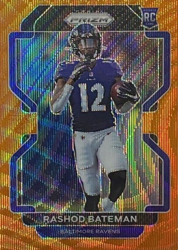2021 PRIZM ROOKIE ORANGE WAVE RASHOD BATEMAN #'d /60 + Base RC - RAVENS Rookie