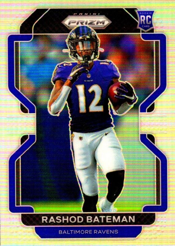 This card is 1 of 71 Rashod Bateman's card variations in the 2021 Prizm set being tracked by Sports Card Investor, including Base, Disco, Green, Green Ice, and Lazer.