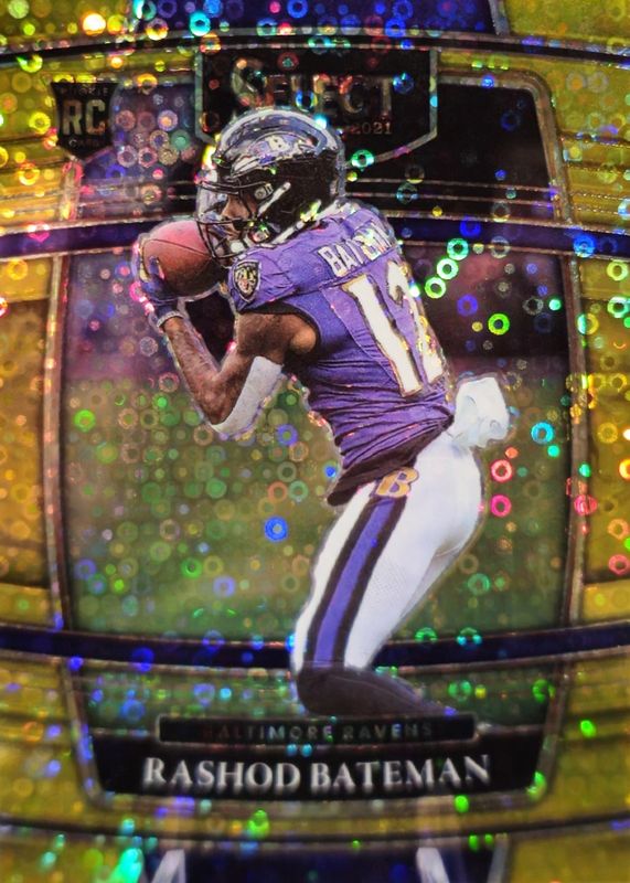 This card is 1 of 153 Rashod Bateman's card variations in the 2021 Select set being tracked by Sports Card Investor, including Club Level, Concourse, Field Level, Premier Level, and Club Level Black & Gold Die-Cut.