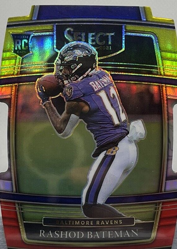 The Rashod Bateman 2021 Select #55 Concourse Red & Yellow Die-Cut Rookie card in Raw condition has not changed in price in the last 30 days and was last sold for $1.00 .