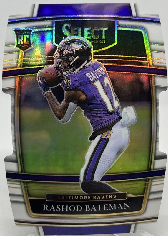 The Rashod Bateman 2021 Select #55 Concourse White Die-Cut /99 Rookie card in Raw condition has not changed in price in the last 30 days and was last sold for $5.00 .