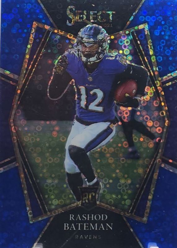 This card is 1 of 153 Rashod Bateman's card variations in the 2021 Select set being tracked by Sports Card Investor, including Club Level, Concourse, Field Level, Premier Level, and Club Level Black & Gold Die-Cut.