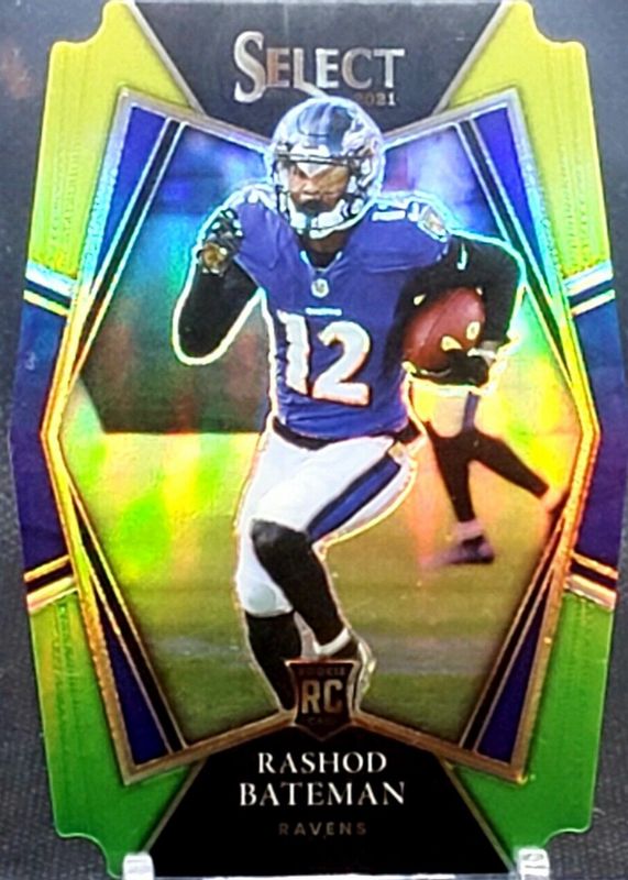Best Prices Available For Sale of Rashod Bateman 2021 Select #155 Premier Level Green & Yellow Die-Cut