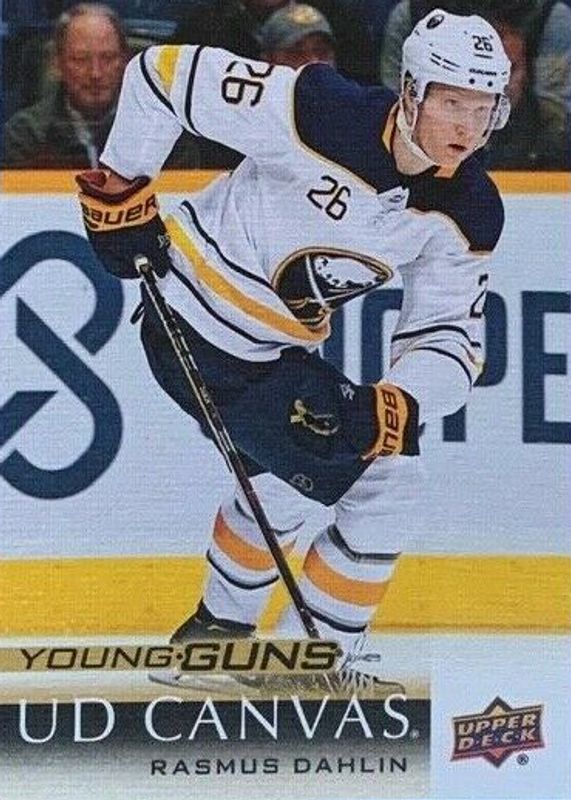 The Rasmus Dahlin 2018 Upper Deck #C239 Young Guns Canvas Rookie card in Raw condition has moved down -$5.70 (-20.4%) in the last 30 days and was last sold for $22.27 .