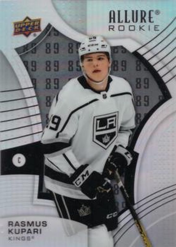 The Rasmus Kupari 2021 Upper Deck Allure #127 Number /199 Rookie card is 1 of 41 Rasmus Kupari's card variations in the 2021 Upper Deck Allure set being tracked by Sports Card Investor, including Base, 1917 Shield, 2005 Shield, Black Rainbow, and Blue China.