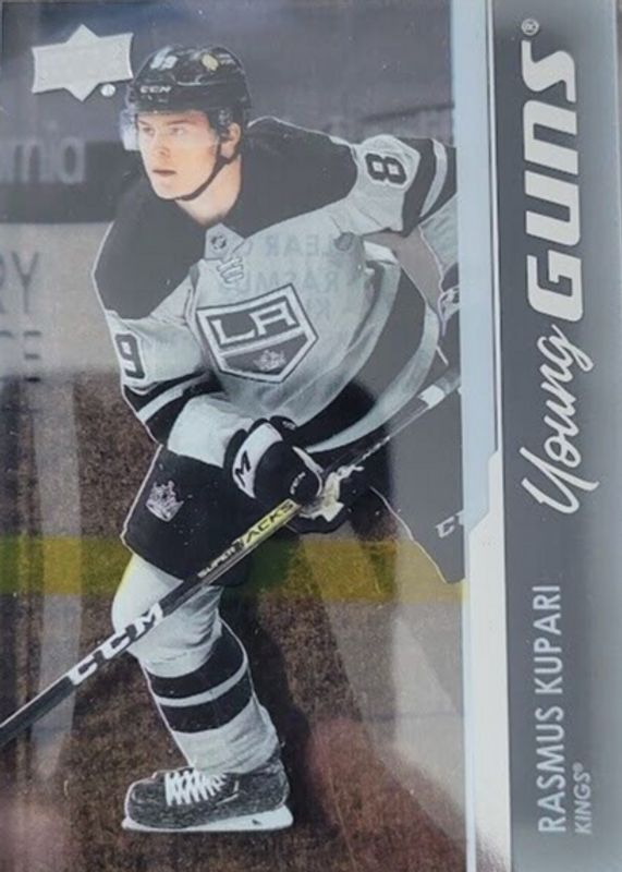 This card is 1 of 9 Rasmus Kupari's card variations in the 2021 Upper Deck set being tracked by Sports Card Investor, including Young Guns Base, Young Guns - Clear Cut Exclusives, Young Guns - French, Young Guns - Jumbo, and Young Guns - Silver Foil.