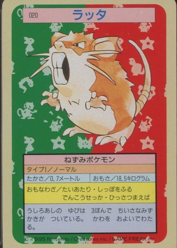 Raticate 1997 Japanese Topsun #020 Green Back (2nd Edition) RAW TCG (HEAVILY PLAYED) Price Guide