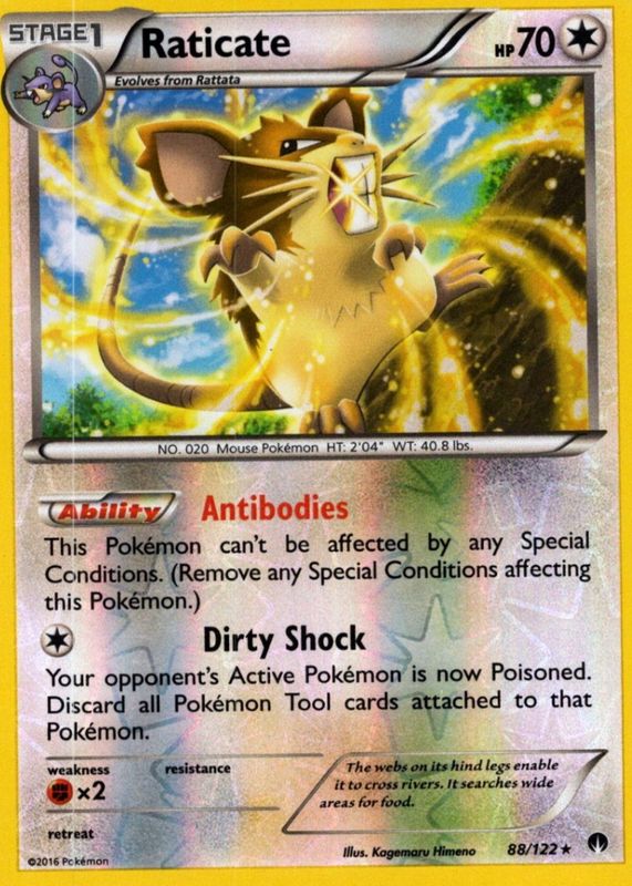 The Raticate 2016 XY: BREAKpoint #088/122 Base card in Raw TCG (Lightly Played) condition has not changed in price in the last 30 days and was last sold for $2.09 .