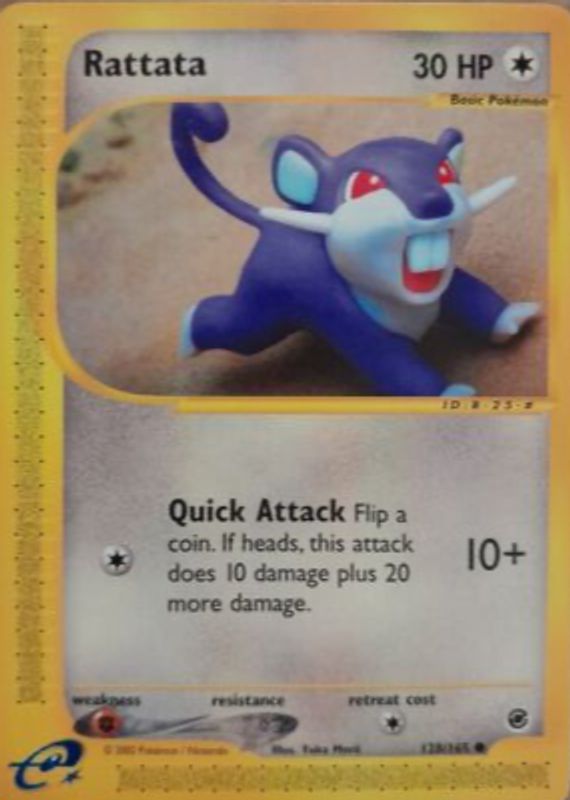 The Rattata 2002 Expedition #128/165 Base card in Raw TCG (Near Mint) condition has moved up $2.06 (+107%) in the last 30 days and was last sold for $3.99 .