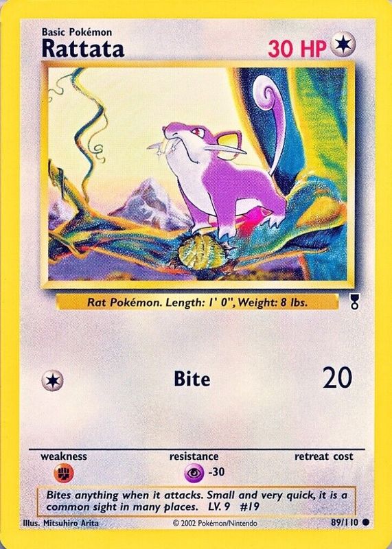 The Rattata 2002 Legendary Collection #89 Base card in Raw TCG (Near Mint) condition has moved down -$0.70 (-41.4%) in the last 30 days and was last sold for $0.99 .