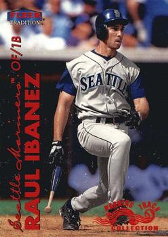 The Raul Ibanez 1999 Fleer Tradition #468W Warning Track Collection card is 1 of 4 Raul Ibanez's card variations in the 1999 Fleer Tradition set being tracked by Sports Card Investor, including Base, Millennium, and Starting 9 /9.
