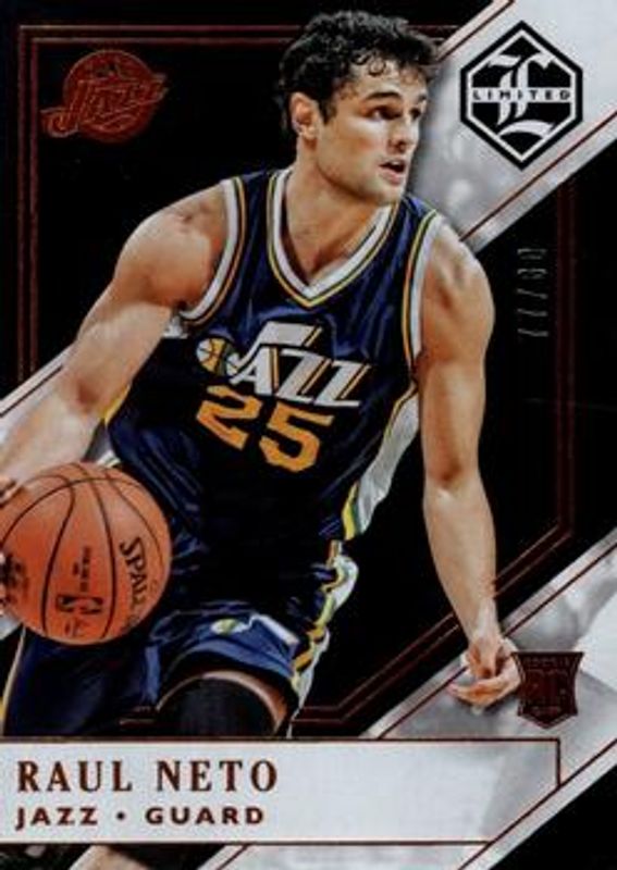 The Raul Neto 2015 Limited #161 Base /80 Rookie card is 1 of 11 Raul Neto's card variations in the 2015 Limited set being tracked by Sports Card Investor, including Silver Spotlight /49, Gold Spotlight /25, Platinum Spotlight /1, Unlimited Potential - Materials /149, and Limited Signatures /99.