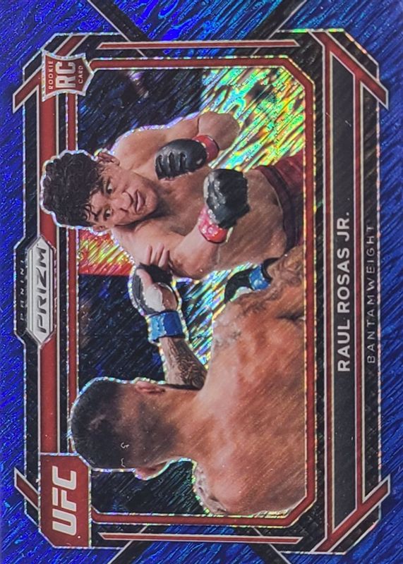 The Raul Rosas Jr. 2023 Prizm UFC #8 Blue Shimmer /10 Rookie card in Raw condition has not changed in price in the last 30 days and was last sold for $180.50 .