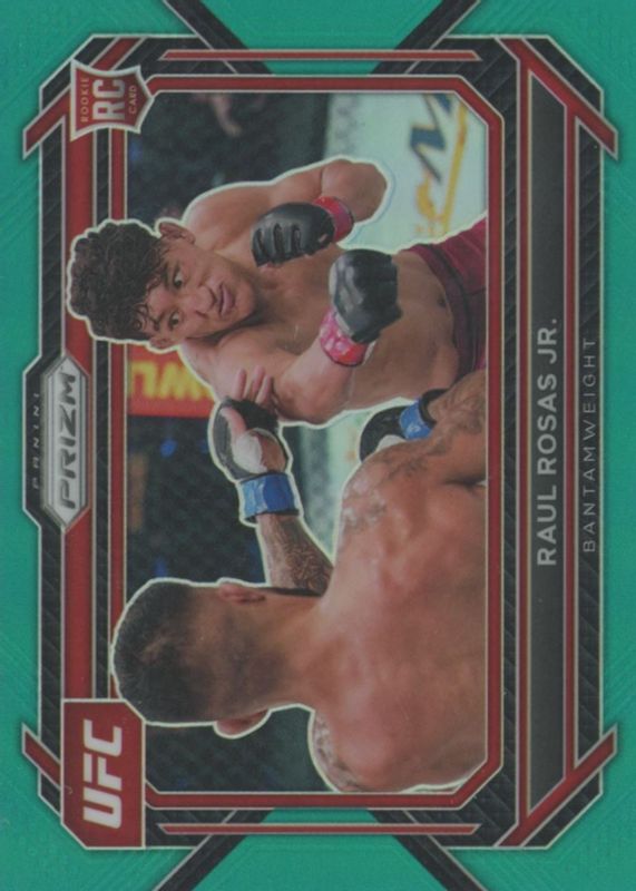The Raul Rosas Jr. 2023 Prizm UFC #8 Teal /49 Rookie card in Raw condition has not changed in price in the last 30 days and was last sold for $43.00 .