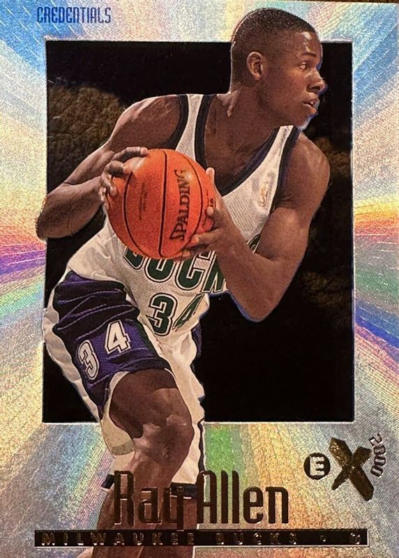 The Ray Allen 1996 Skybox E-X2000 #37 Credentials /499 Rookie card in Raw condition has not changed in price in the last 30 days and was last sold for $405.00 .