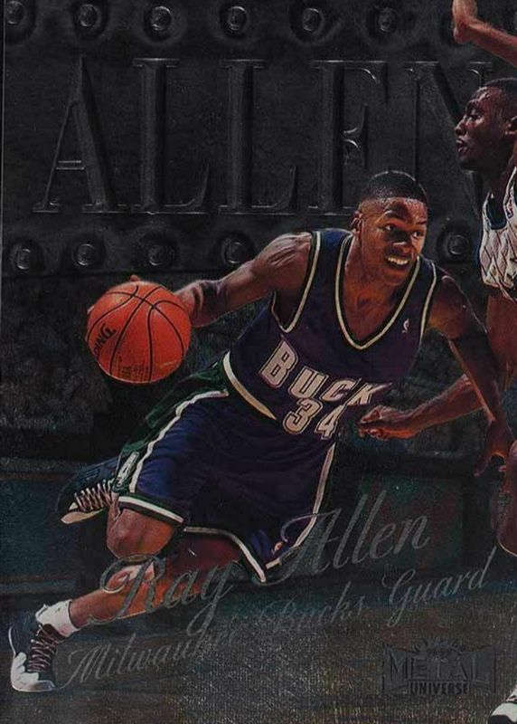 This card is 1 of 6 Ray Allen's card variations in the 1998 Metal Universe set being tracked by Sports Card Investor, including Base, Gem Masters /1, Big Ups, Autographics, and Precious Metal Gems /50.