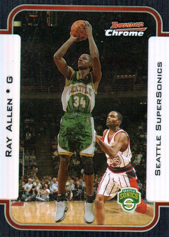 This card is 1 of 3 Ray Allen's card variations in the 2003 Bowman set being tracked by Sports Card Investor, including Chrome - X-Fractor /150, and Chrome - Gold Refractor /50.