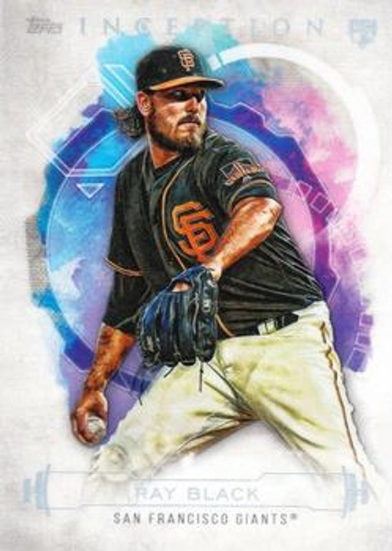 The Ray Black 2019 Topps Inception #73 Base Rookie card is 1 of 18 Ray Black's card variations in the 2019 Topps Inception set being tracked by Sports Card Investor, including Green, Purple /150, Magenta /99, Red /75, and Orange /50.