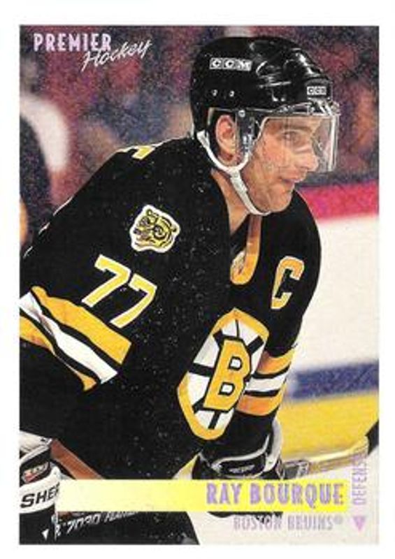 The Ray Bourque 1994 Topps Premier #420 Special Effects card is 1 of 8 Ray Bourque's card variations in the 1994 Topps Premier set being tracked by Sports Card Investor, including #36 Base, #420 Base, #454 Base, #490 Base, and #36 Special Effects.