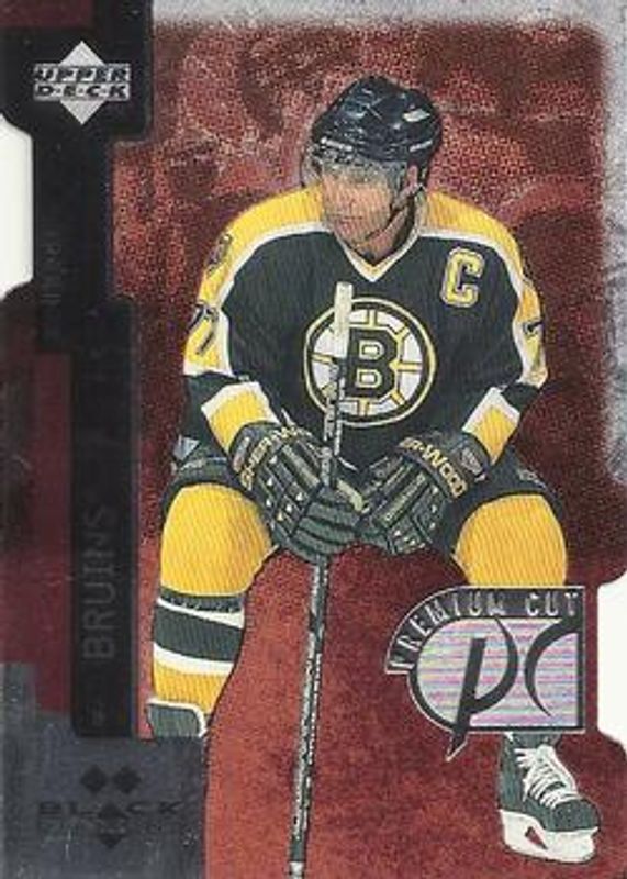 The Ray Bourque 1997 Upper Deck Black Diamond #PC4 Premium Cut Double Diamond card is 1 of 9 Ray Bourque's card variations in the 1997 Upper Deck Black Diamond set being tracked by Sports Card Investor, including Base, Double Diamond, Quadruple Diamond, Triple Diamond, and Premium Cut.