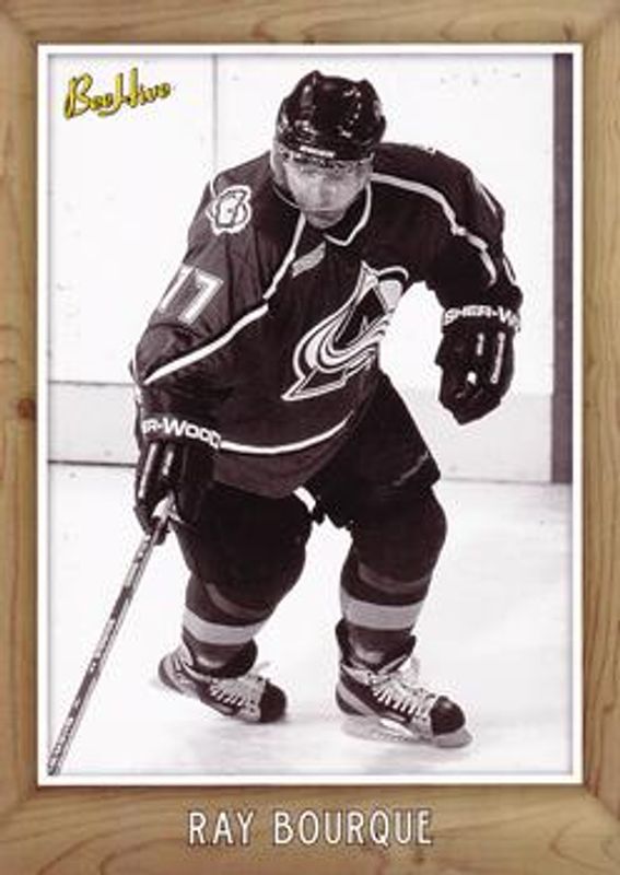 The Ray Bourque 2006 Upper Deck Beehive #216 5x7 Variation card is 1 of 5 Ray Bourque's card variations in the 2006 Upper Deck Beehive set being tracked by Sports Card Investor, including 5x7 Photo Cards, Matted Materials, Photo GRAPHS, and Remarkable Matted Materials /15.