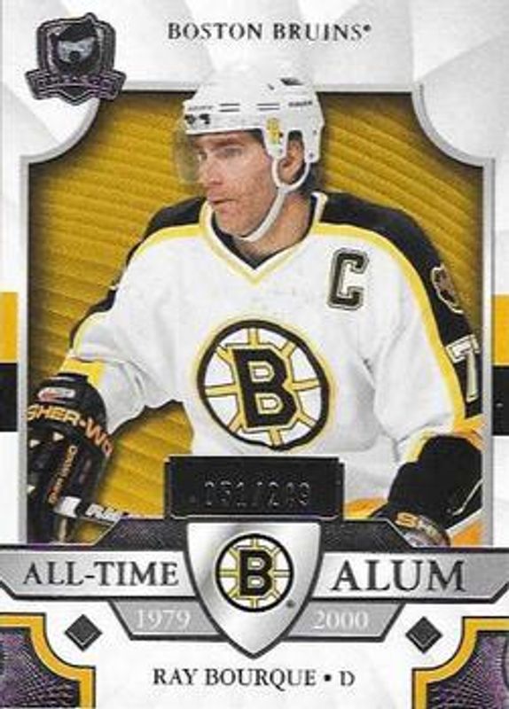 The Ray Bourque 2019 Upper Deck The Cup #ATA-RB All Time Alumni /249 card is 1 of 5 Ray Bourque's card variations in the 2019 Upper Deck The Cup set being tracked by Sports Card Investor, including All Time Alumni - Gold /50, Scripted Sticks /15, All Time Alumni - Red /5, and All Time Alumni - Black /1.
