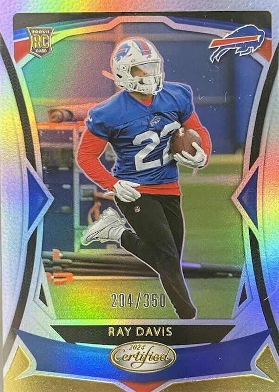 This card is 1 of 37 Ray Davis' card variations in the 2024 Certified set being tracked by Sports Card Investor, including Base Rookie /400, Mirror Bronze /275, Mirror Pink /225, Mirror Orange /150, and Mirror Red /100.