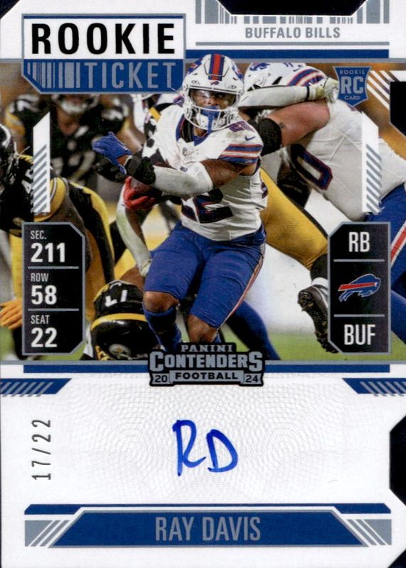 2024 Panini Contenders Ray Davis- Rookie Ticket RPS Ticket Stub /22 ON CARD AUTO