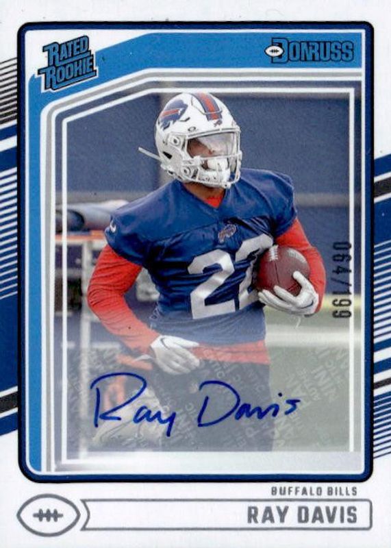 2024 Donruss Rated Rookies Autographs Blue 316 Ray Davis Buffalo Bills Rookie
