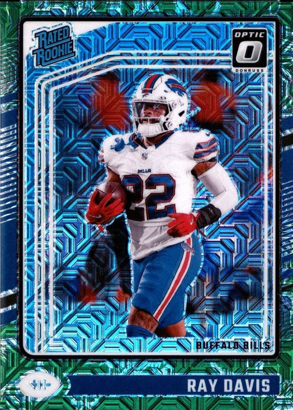 This card is 1 of 58 Ray Davis' card variations in the 2024 Optic set being tracked by Sports Card Investor, including Base, Blue Hyper, Blue Scope, Green Hyper, and Green Velocity.