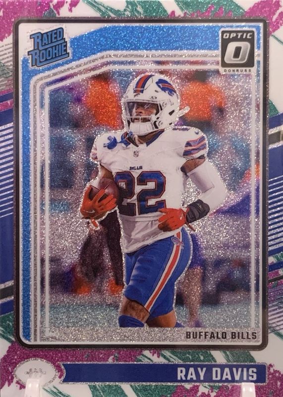 The Ray Davis 2024 Optic #283 Jazz /(SSP) Rookie card in Raw condition has not changed in price in the last 30 days and was last sold for $41.00 .