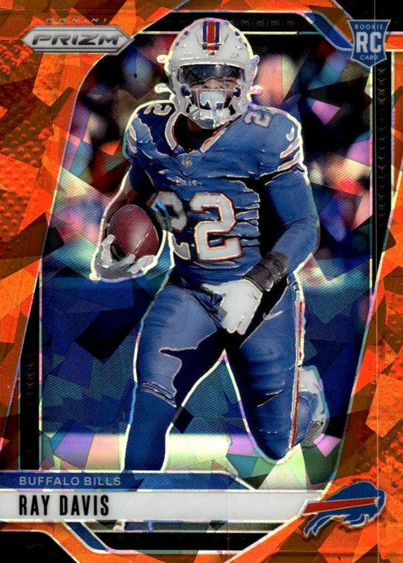The Ray Davis 2024 Prizm #382 Orange Ice Rookie card in Raw condition has moved up $1.38 (+53.3%) in the last 30 days and was last sold for $3.97 .