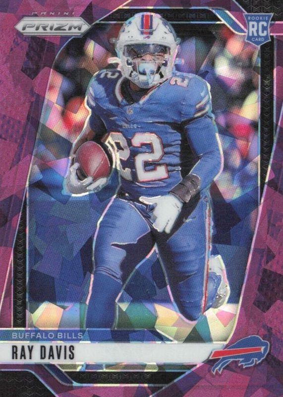 The Ray Davis 2024 Prizm #382 Purple Ice /225 Rookie card in Raw condition has moved up $6.99 (+140%) in the last 30 days and was last sold for $11.99 .